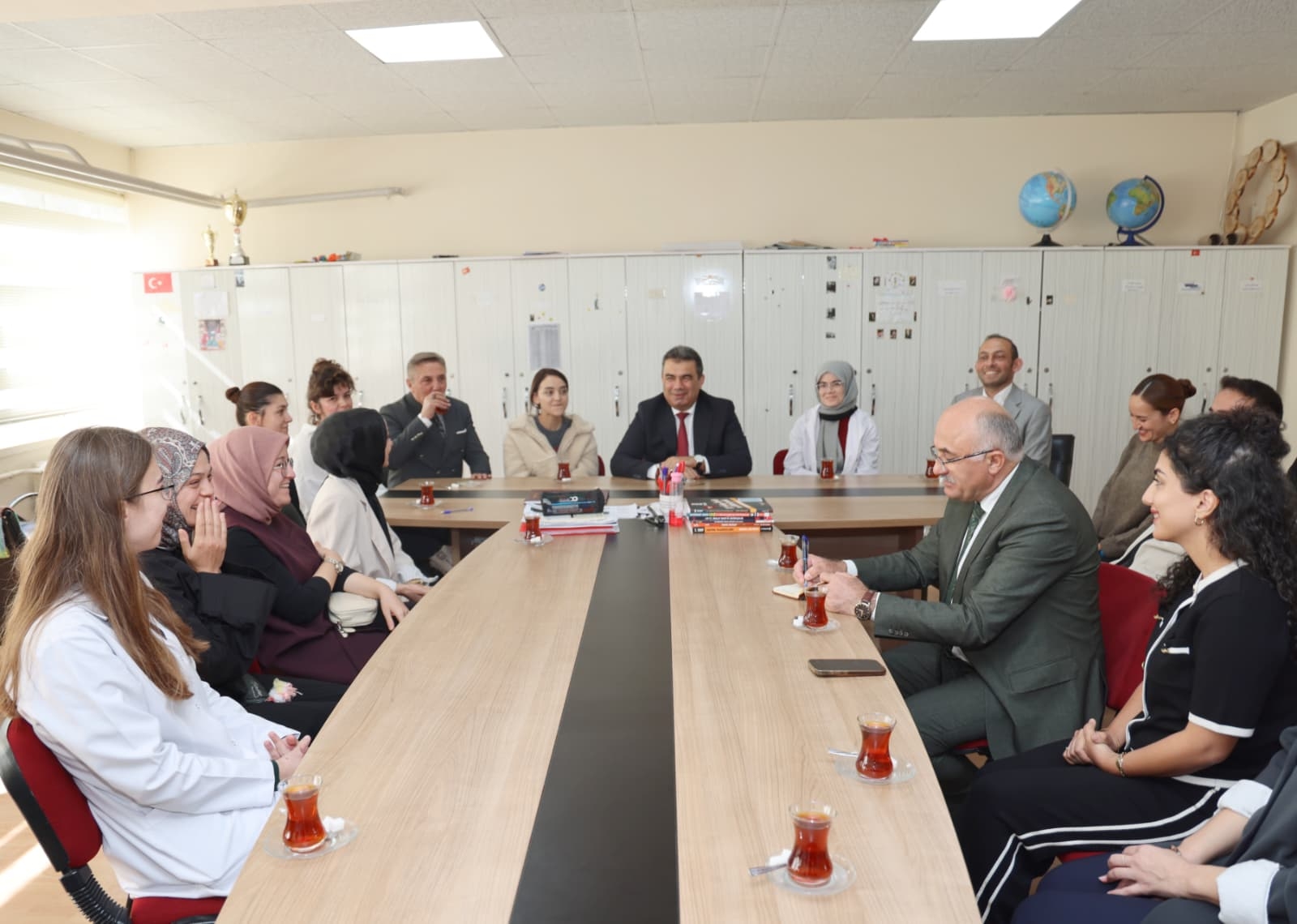İl Millî Eğitim Müdür Yardımcımız Yaşar Dolapcı ve Pınarbaşı İlçe Millî Eğitim Müdürü Atasever Yiğit'in de eşlik ettiği ziyarette öğretmenlerimizle bir araya gelen İl Müdürümüz Hasan Gümüş; Türkiye Yüzyılı Maarif Modeli, bilimsel ve teknolojik gelişmeler ve yeşil vatanın korunmasının önemi üzerine sohbet etti.