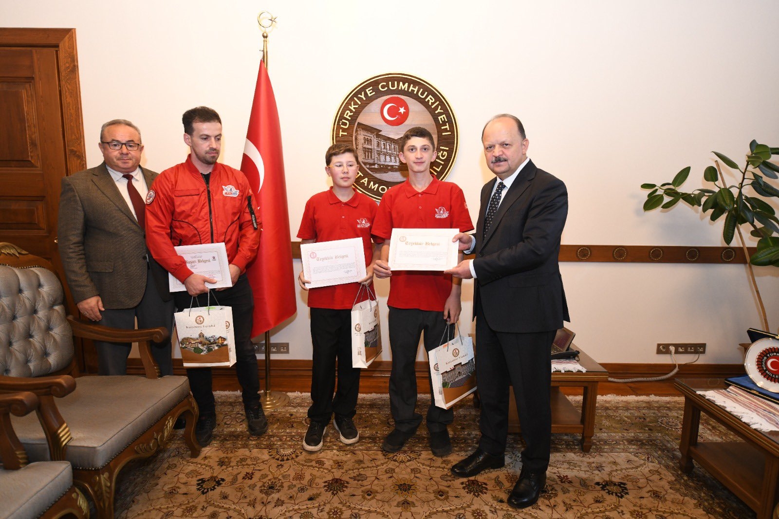 Valimiz, bu başarının mimarı öğrencilerimizi ve danışman öğretmenlerini tebrik etti.